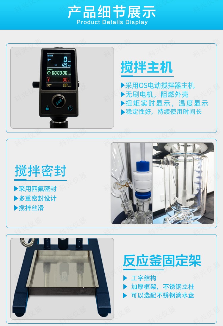 公司又根據(jù)客戶具體使用環(huán)境做出1-5L小型玻璃反應(yīng)釜升級(jí)款,采用我司OS-Pro系列攪拌器主機(jī)作為核心主機(jī),一體大屏顯示轉(zhuǎn)速,定時(shí),溫度和實(shí)時(shí)的電機(jī)扭矩。