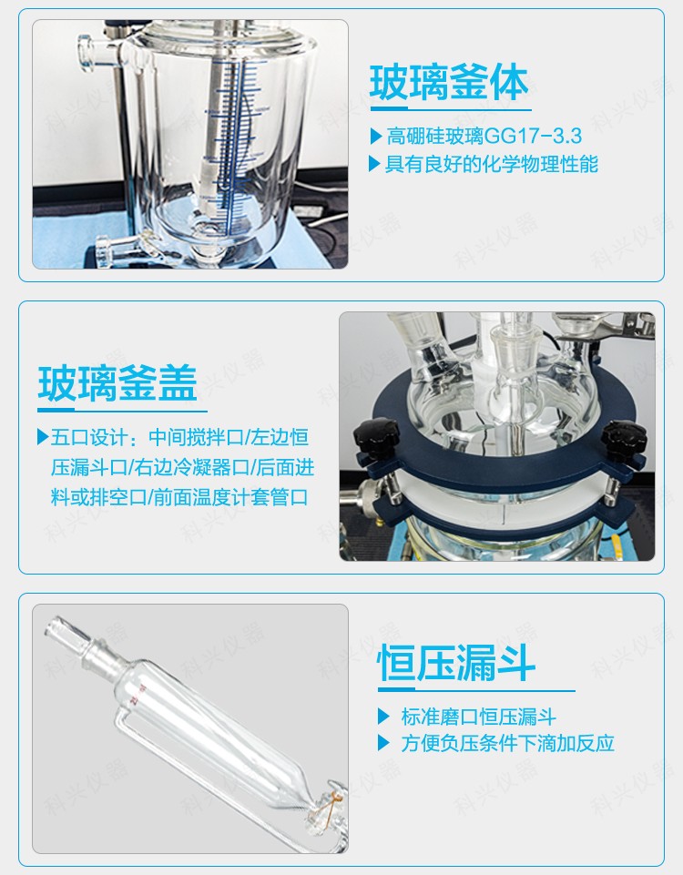 | 釜體 | 材質(zhì) | 3.3硼硅玻璃 | 3.3硼硅玻璃 | 3.3硼硅玻璃 | 3.3硼硅玻璃 |
